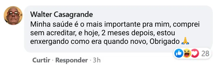 Eu tinha Catarata a 2 anos, não enxergava no olho direito, até que conheci o Chá Tailandês, confesso que sou muito incrédulo e não confiei que ia dar certo, mesmo assim eu fui, e o que posso dizer do resultado, hoje eu estou enxergando muito melhor, e meu médico disse que essa melhora é muito surpreendente.